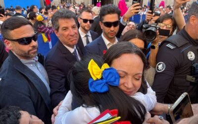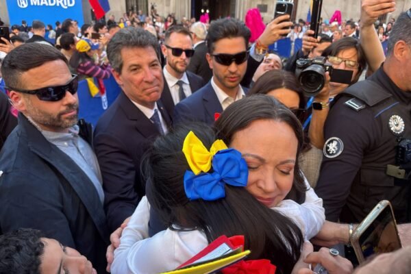 Maria Corina Machado receives symbolic ‘golden key’ in Madrid as Venezuelans welcome her