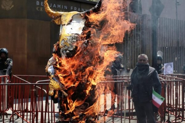 Alrededor de 60 activistas y miembros de la comunidad iraní prendieron fuego este sábado a una figura que aludía al…