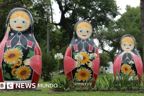 Pie de foto, En San Javier hay varias señales de las raíces rusas del pueblo, como estas grandes matrioskas en…
