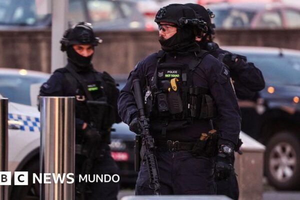 Fuente de la imagen, Getty Images Pie de foto, Policías armados en el lugar donde ocurrió el tiroteo en Bondi…
