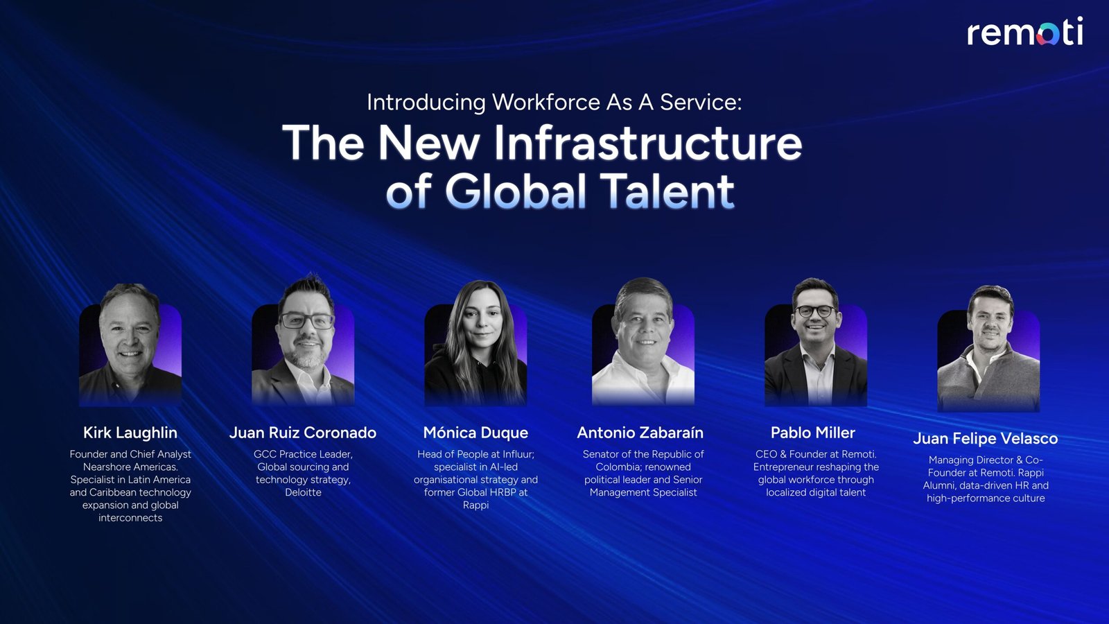 Remoti’s launch event included Dr. Antonio Zabarain, a member of Congress who championed legislation to promote Colombia’s technology sector, alongside executives from Deloitte, Cast and Crew, and the HR platform Influur.