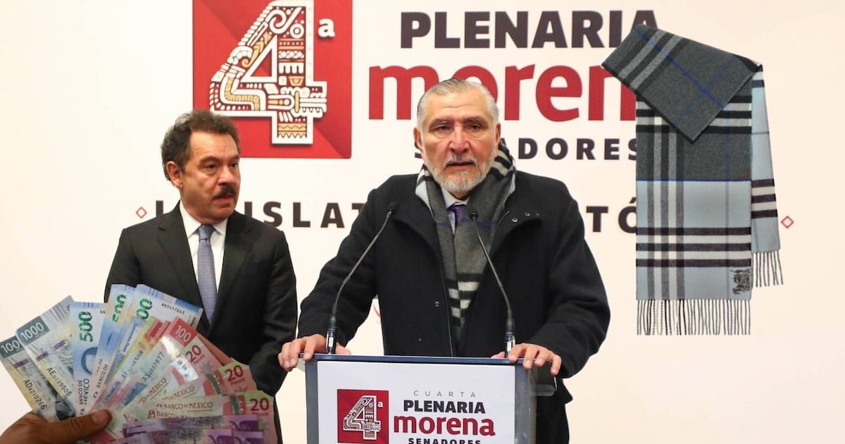 Se fue, pero con estilo: Adán Augusto renunció a la coordinación de Morena en el Senado y durante el anuncio utilizó una bufanda de la lujosa marca de moda Burberry, que cuesta algunos miles de pesos.