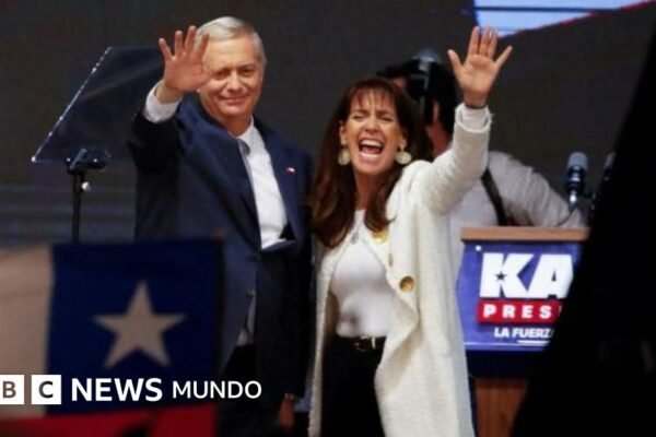 Fuente de la imagen, Reuters Pie de foto, José Antonio Kast y su esposa, María Pía Adriasola, agradecieron el apoyo…