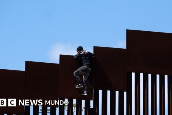 Fuente de la imagen, Getty Images Pie de foto, Un migrante intenta cruzar la frontera con EE.UU. Información del artículo…