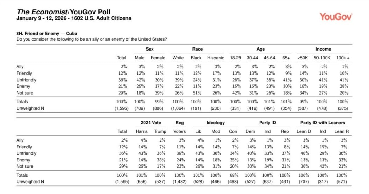 Una encuesta nacional realizada por The Economist y YouGov muestra que la percepción de Cuba entre los estadounidenses sigue siendo mayoritariamente negativa.