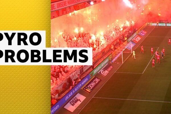 Watch the moment a referee is forced to stop play in the match between Union Berlin and Eintracht Frankfurt in…