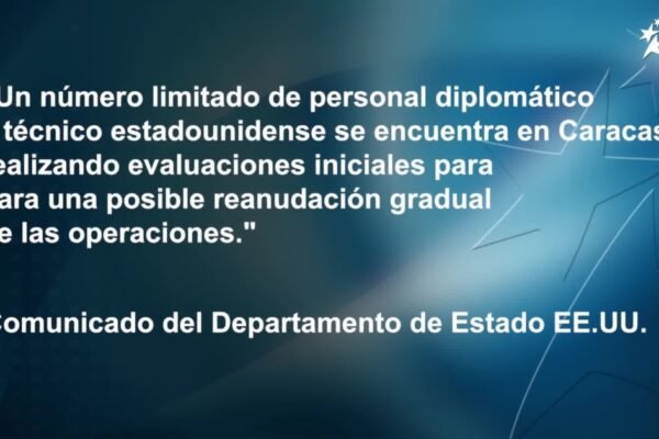 “Un número limitado de personal diplomático y técnico estadounidense se encuentra en Caracas realizando evaluaciones iniciales para una posible reanudación…