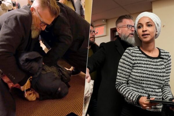 Un hombre arrojó una sustancia desconocida sobre la representante federal Ilhan Omar antes de ser sometido durante una asamblea pública…