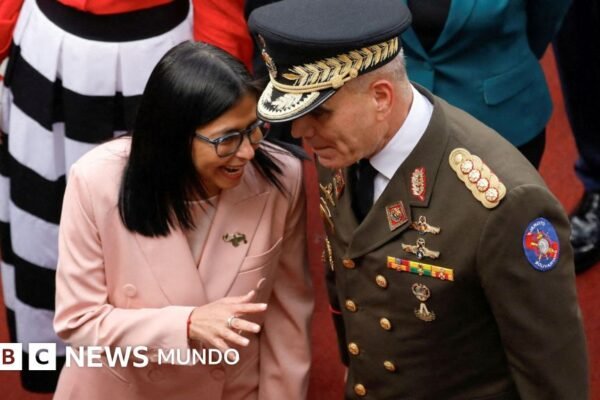 Fuente de la imagen, Reuters Pie de foto, El general Padrino López cerró filas con la vicepresidenta Delcy Rodríguez, actual…
