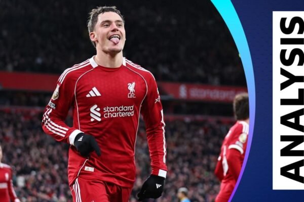 Match of the Day pundit Wayne Rooney praises the performance and development of Florian Wirtz after he scored his first…