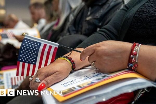 Fuente de la imagen, Getty Images Pie de foto, El último paso para la naturalización es la ceremonia de juramento….