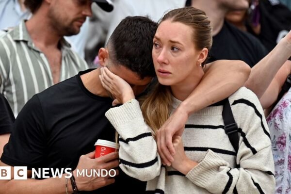 Fuente de la imagen, AFP via Getty Images Pie de foto, Muchas personas se congregaron en Bondi Beach este lunes…