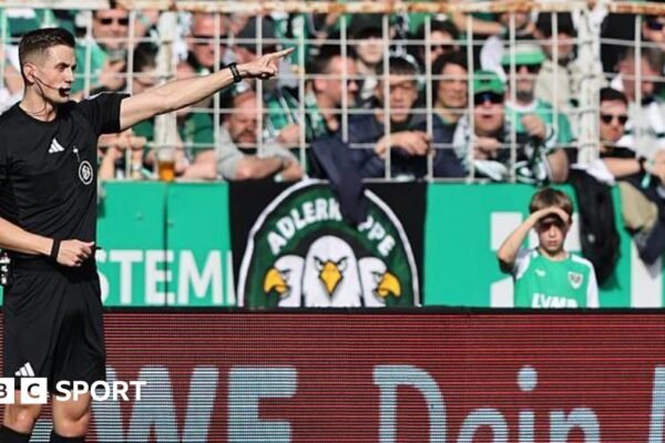 A masked fan unplugged a video assistant referee (VAR) monitor in a German second division match on Sunday as the…