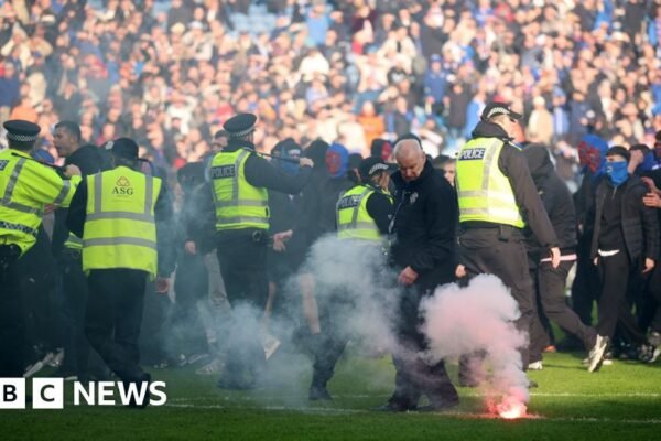 Flares were thrown as supporters from both sides spilled onto the pitch after Celtic’s 4-2 win on penalties. Source link