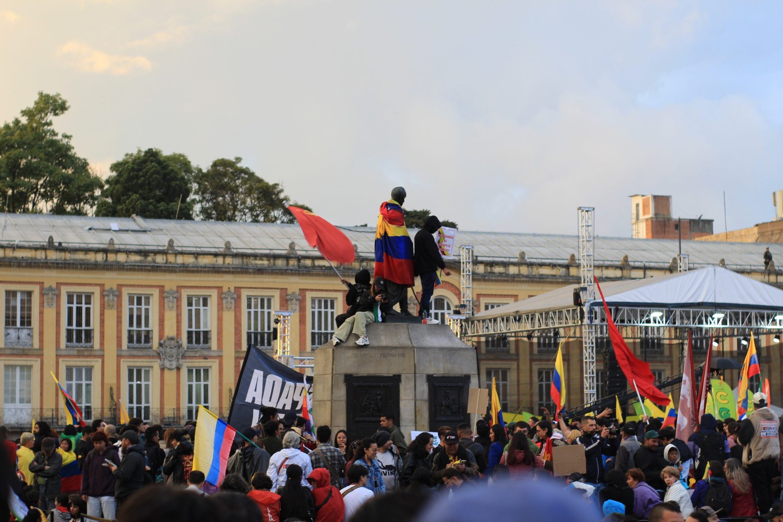 Featured image: Demonstrators at Plaza de Bolívar in central Bogotá