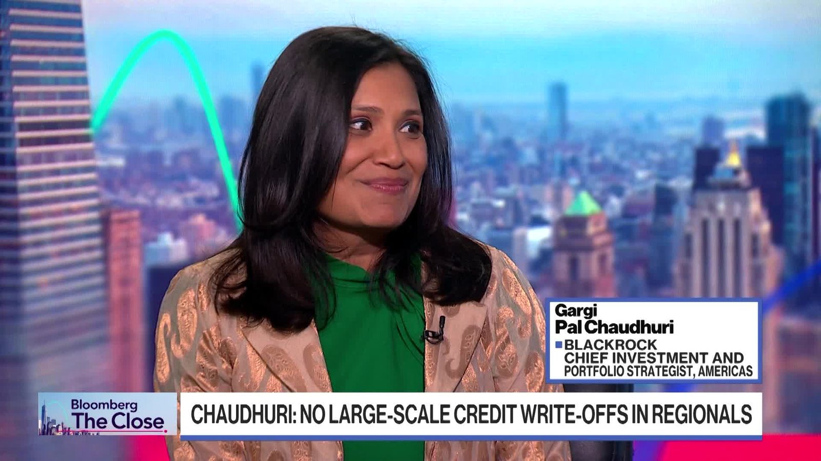 Gargi Chaudhuri, BlackRock Chief Investment and Portfolio Strategist, says bank earnings are a strong signal that consumers remain resilient. She tells Romaine Bostick and Katie Greifeld on “The Close” that we’re nowhere near an AI bubble, emphasizing there will be both winners and losers in the space. (Source: Bloomberg)